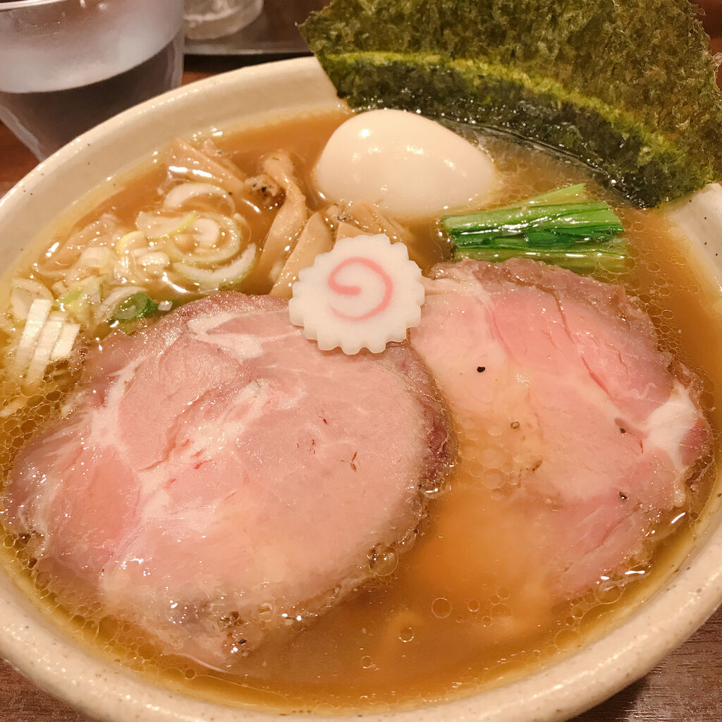 ラーメン二郎との関係を想像して歩み寄ってみると、意外にも普通の醤油ラーメンやシジミラーメンの写真。スープに自信がありそうな雰囲気を感じて店内に。席数は、7席ほどのこじんまりとした落ち着いた個人経営店の雰囲気。特製ラーメン980円をオーダー。スープはやや甘みを感じる醤油味。くどくもなく、強いスッキリ感もないややまったり優しい味。麺は細めの縮れ麺だが、特にコメントするような味はない。このラーメンでインパクトがあるのはチャーシュー。厚めでしっとり柔らかく、肩ロースと思われる。チャーシュー好きなら一度は食べる価値あり。
